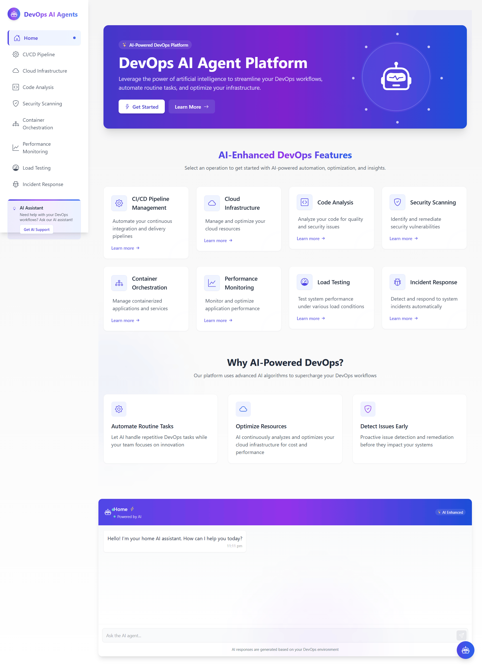 A comprehensive AI-powered platform designed to streamline DevOps workflows, automate routine tasks, and provide intelligent insights for your infrastructure and application development